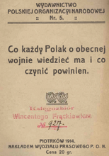 Broszury polityczne drukowane przede wszystkim w Piotrkowie przez Drukarnię Państwową pod zarządem Departamentu Wojskowego Naczelnego Komitetu Narodowego, a także pamiętniki, relacje z walk, jednodniówki, np.: